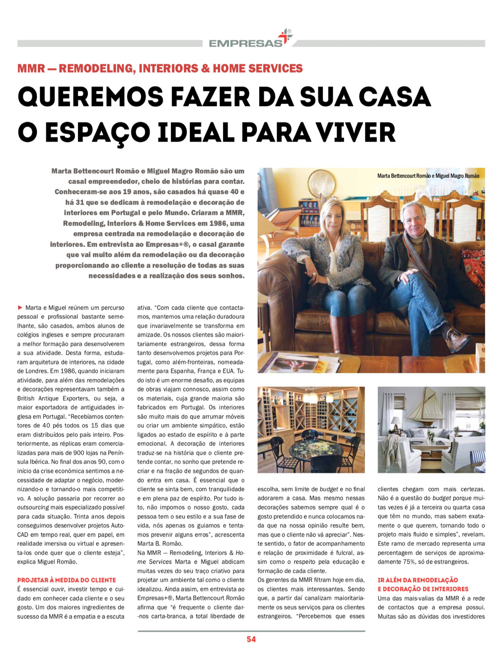 Over the years, MMR has acquired more than clients; MMR made good friends beyond Cascais, Lisbon and around the world. It is under solid relationships that our business has grown.